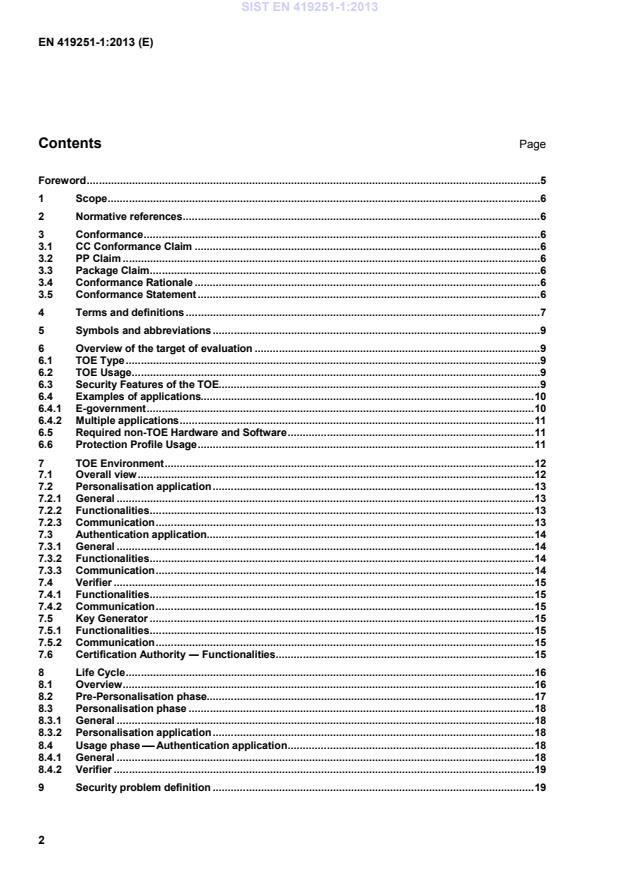 ...................................................................................... 15 8 Life Cycle ........................................................................................................................................ 16 8.1 Overview ......................................................................................................................................... 16 8.2 Pre-Personalisation phase ............................................................................................................. 17 8.3 Personalisation phase ................................................................................................................... 18 8.3.1 General ........................................................................................................................................... 18 8.3.2 Personalisation application ........................................................................................................... 18 8.4 Usage phase Authentication application .................................................................................. 18 8.4.1 General ........................................................................................................................................... 18 8.4.2 Verifier ............................................................................................................................................ 19 9 Security problem definition ........................................................................................................... 19 SIST EN 419251-1:2013