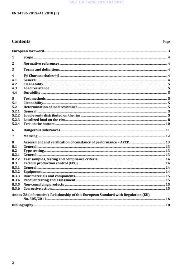 Keywords: EN 14296:2015+A1:2018, communal washing troughs, sanitary appliances, cleanability, load resistance, durability, CEN, EN 695, AVCP.