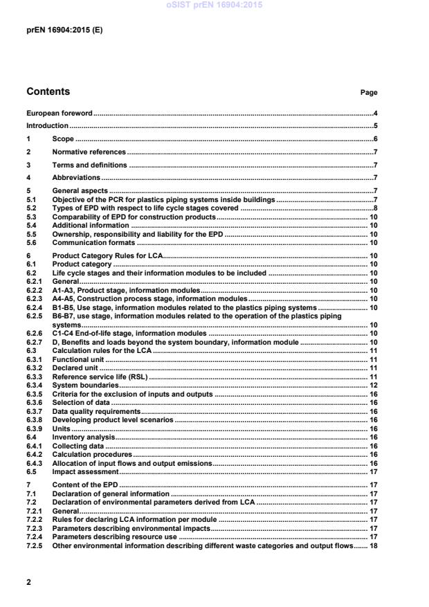 Zusätzlich zu den allgemeinen Teilen der EN 15804 legt diese Europäische Norm zu europäischen Kunst¬stoff-Rohrleitungssystemen innerhalb von Gebäuden Folgendes fest: