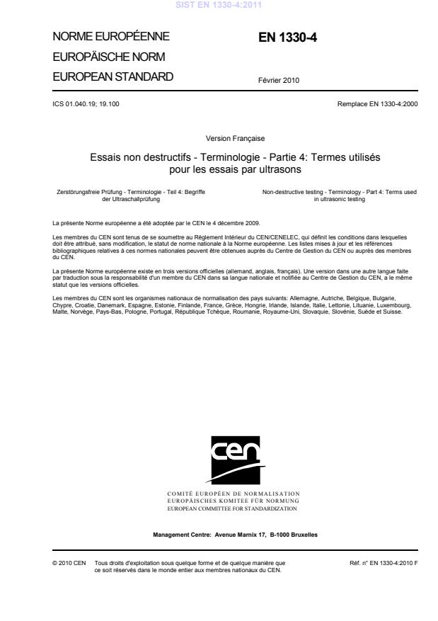 Février 2010 ICS 01.040.19; 19.100 Remplace EN 1330-4:2000Version Française