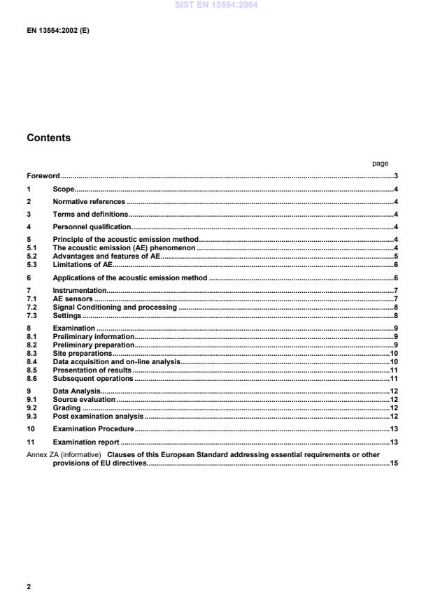 EN 13554:2002 is a standard published by the European Committee for Standardization (CEN). Its full title is "Non-destructive testing - Acoustic emission - General principles". This standard covers: This standard defines the general principles required for the acoustic emission (AE) testing of industrial structures, components, and different materials under stress and for harsh environment, in order to provide a defined and repeatable performance. It includes guide lines for the preparation of application documents, which describe the specific requirements for the application of the AE method. Unless otherwise specified in the referencing documents, the minimum requirements of this standard are applicable.