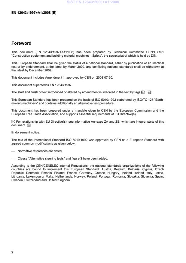 Erdbaumaschinen - Radfahrzeuge - Lenkvermögen (ISO 5010:1992 modifiziert) This European Standard was approved by CEN on 21 April 1997 and includes Amendment 1 approved by CEN on 30 July 2008.
