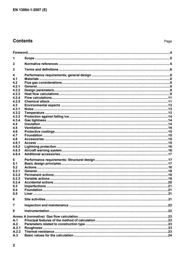 This European Standard deals with the general requirements and the basic performance criteria for the design and construction of all types of free standing chimneys including their liners. A chimney may also be considered as free standing, if it is guyed or laterally supported or if it stands on another structure.