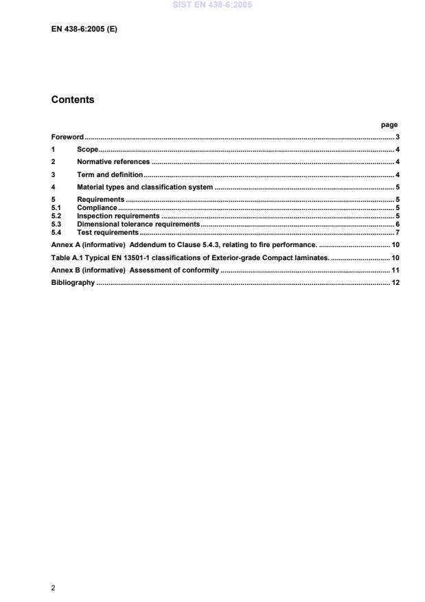 Addendum to Clause 5.4.3, relating to fire performance.10 Table A.1 Typical EN 13501-1 classifications of Exterior-grade Compact laminates.10 Annex B (informative)