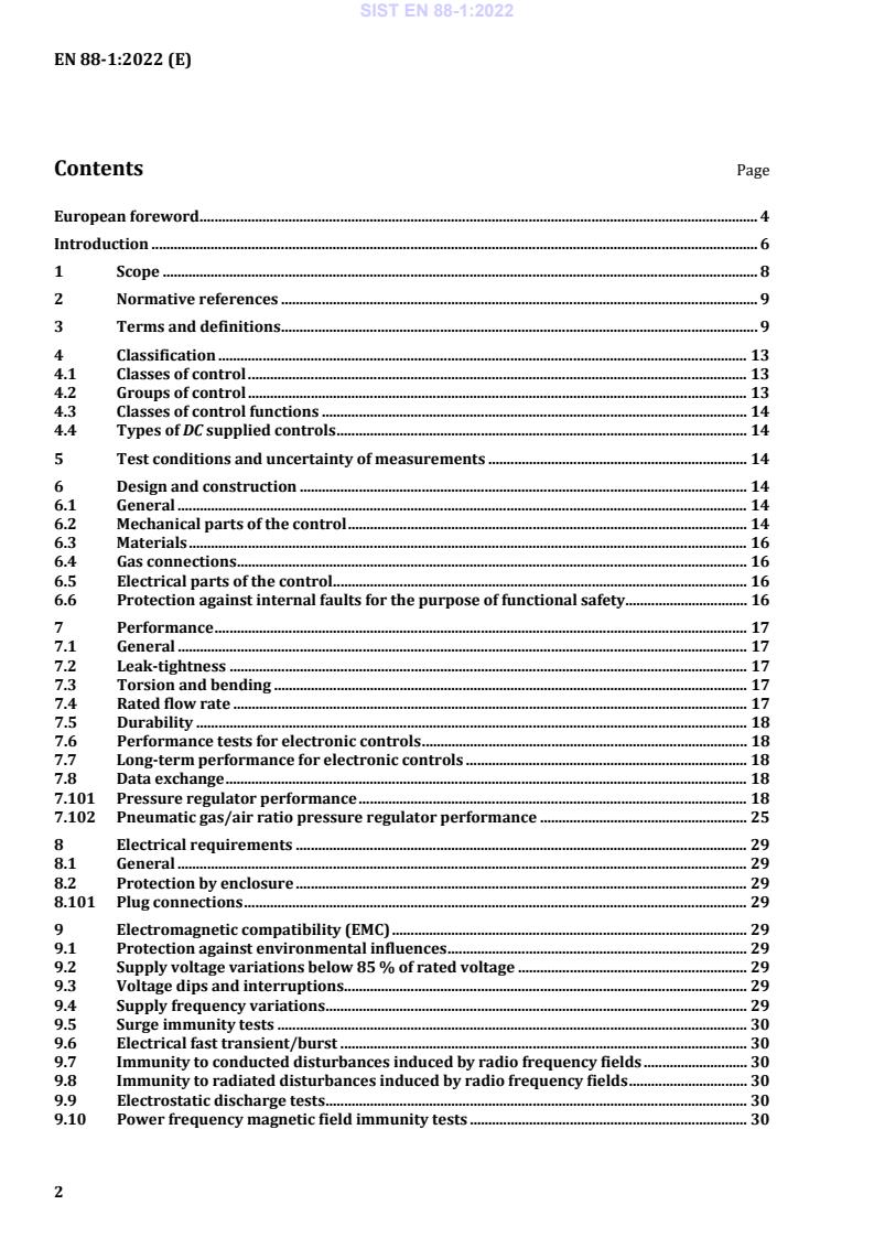 EN 88-1:2022 is a standard published by the European Committee for Standardization (CEN). Its full title is "Safety and control devices for gas burners and gas burning appliances - Part 1: Pressure regulators for inlet pressures up to and including 50 kPa". This standard covers: EN 13611:2019, Clause 1 applies with the following modification and addition: Modification: The 1st paragraph of EN 13611:2019, Clause 1 is replaced by: This document specifies the safety, design, construction, and performance requirements and testing for pressure regulators and pneumatic gas/air ratio pressure regulators (zero pressure regulators are included as a special type of pneumatic gas/air ratio pressure regulators) for burners and appliances burning one or more gaseous fuels, hereafter referred to as “pressure regulators”. This document is applicable to pressure regulators with declared maximum inlet pressures up to and including 50 kPa and of nominal connection sizes up to and including DN 250. Addition: This document is applicable to: - pressure regulators which use auxiliary energy; - pneumatic gas/air ratio pressure regulators, which function by controlling a gas outlet pressure in response to an air signal pressure, air signal differential pressure, and/or to a furnace pressure signal (zero pressure regulators are included as a special type of pneumatic gas/air ratio pressure regulators); - pneumatic gas/air ratio pressure regulators, which change an air outlet pressure in response to a gas signal pressure or a gas signal differential pressure. This document is not applicable to: - pressure regulators connected directly to a gas distribution network or to a container that maintains a standard distribution pressure; - pressure regulators intended for gas appliances to be installed in the open air and exposed to the environment; - mechanically linked gas/air ratio controls; - electronic gas/air ratio controls (EN 12067 2:2022). The 4th paragraph of EN 13611:2019, Clause 1 is removed.