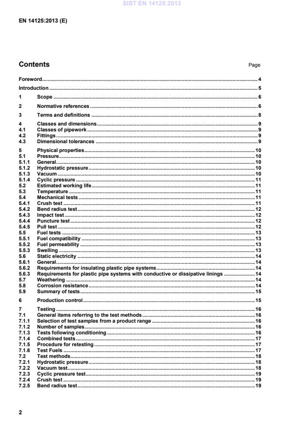 EN 14125:2013 is a standard published by the European Committee for Standardization (CEN). Its full title is "Thermoplastic and flexible metal pipework for underground installation at petrol filling stations". This standard covers: This European Standard specifies requirements for underground pipework systems used to transfer liquid fuels and their vapours at petrol filling stations. Minimum performance requirements covering fitness for purpose, safety and environmental protection are given. This European Standard applies to pipework made from thermoplastics, which may include some degree of reinforcement, and to flexible metal pipework. It does not apply to fibre reinforced thermosets, commonly referred to as glass fibre reinforced plastic (GRP), nor to rigid metals. This document applies to: - delivery pipes from tanks to dispensers, including positive pressure, vacuum suction and siphon modes; - fill pipes from road tankers to tanks; - vapour recovery and vent pipework; - pipework for secondary containment; - fittings. It does not apply to pipework for use with liquefied petroleum gas.