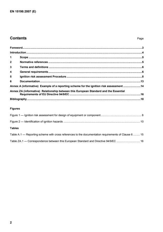 Figures Figure 1 — Ignition risk assessment for design of equipment or component.8 Figure 2 — Identification of ignition hazards.10 Tables Table A.1 — Reporting scheme with cross references to the documentation requirements of Clause 6.15 Table ZA.1 — Correspondence between this European Standard and Directive 94/9/EC.16