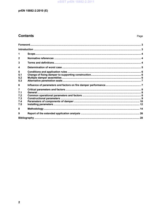 prEN 15882-2 is a draft published by the European Committee for Standardization (CEN). Its full title is "Extended application of results from fire resistance tests for service installations - Part 2: Dampers". This standard covers: To provide guidance and rules to notified or accredited bodies (for Fire Dampers) to allow them to define the extended field of application for fire dampers. To identify the parameters that affects the fire resistance of dampers. In addition, to identify the factors that need to be considered when deciding whether, or by how much, the parameter can be extended when contemplating the fire resistance performance of an untested, or untestable variation in the construction.