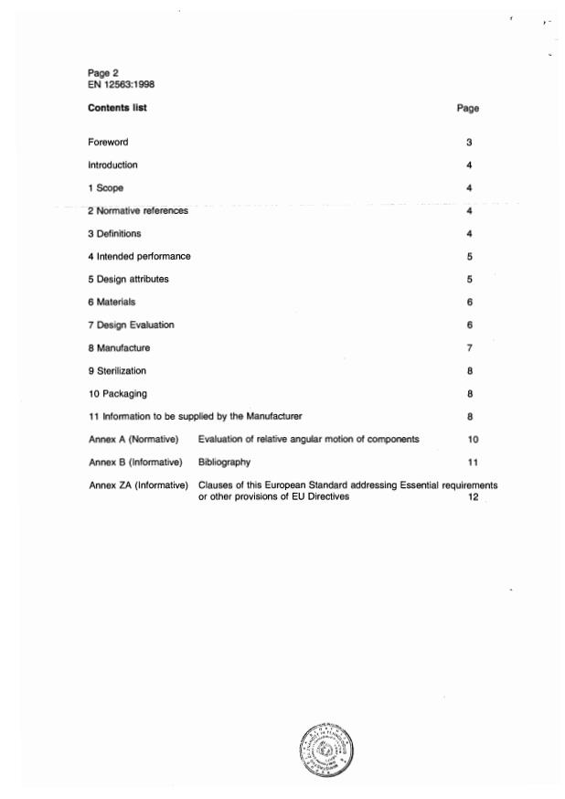 EN 12563:1998 is a standard published by the European Committee for Standardization (CEN). Its full title is "Non-active surgical implants - Joint replacement implants - Specific requirements for hip joint replacement implants". This standard covers: This European Standard provides specific requirements for hip joint replacement implants. With regard to safety, the standard gives requirements for intended performance, design attributes, materials, design evaluation, manufacture, sterilization, packaging and information supplied by the manufacturer, and methods of test.