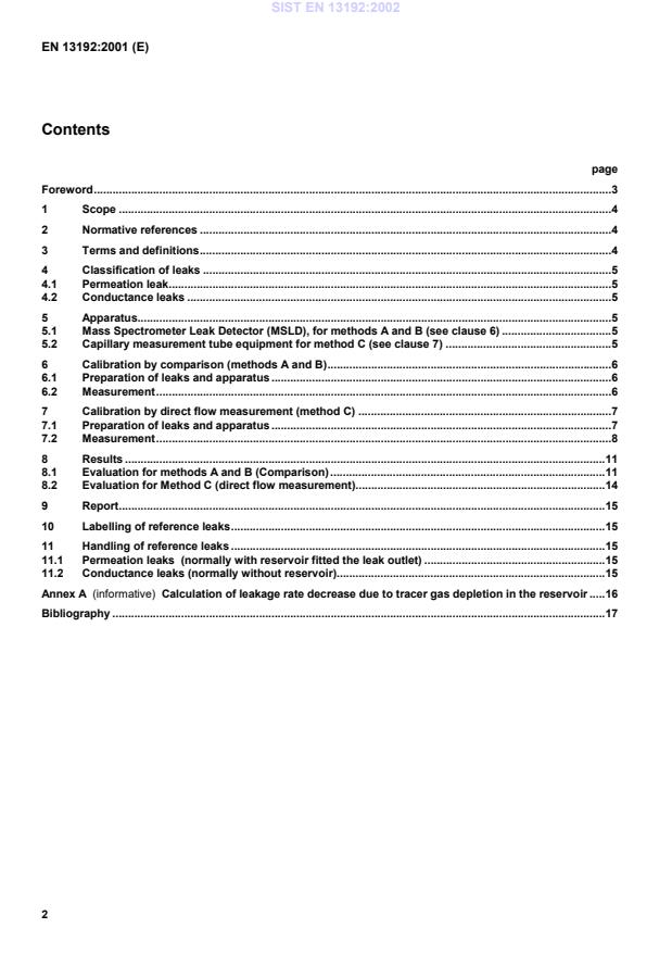 Calculation of leakage rate decrease due to tracer gas depletion in the reservoir.16Bibliography.17SIST EN 13192:2002