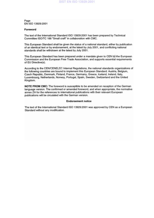 International Standard ISO 13929 was prepared by Technical Committee ISO/TC 188, Small craft.