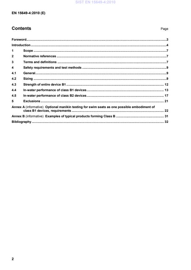Ta evropski standard določa varnostne zahteve in preskusne metode, ki se nanašajo na materiale, varnost, zmogljivost in uporabniške podatke za razvrščene plavajoče pripomočke za prosti čas, ki se uporabljajo na vodi in v njej, v skladu z EN 15649-1. Ta dokument se uporablja z EN 15649-1 in EN 15649-2. Ta evropski standard se uporablja za plavajoče pripomočke za prosti čas, ki se uporabljajo na vodi in v njej, razreda B v skladu z EN 15649-1, ne glede na to ali se plavanje doseže z napihovanjem ali inherentno plavajočim materialom. Naprave razreda B imajo plavajočo konstrukcijo z eno ali več odprtinami, v katere je nameščen uporabnik, ki je delno potopljen.