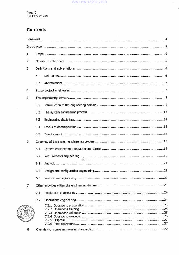 Diese Norm informativen Charakters enthält die grundlegenden Regeln und Grundprinzipien für alle Engineering-tätigkeiten im Rahmen der Durchführung eines Raumfahrtprojektes. Sie befaßt sich mit der auf den Kundenerfordernissen basierenden Aufstellung der Missionsziele, Anforderungen und Spezifikationen für Raumfahrtsysteme sowie mit Design, Definition, Produktion, Verifikation, Betrieb und letztlich Entsorgung der Systeme selbst.