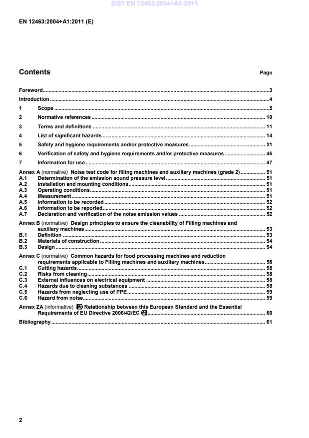 !!!!Relationship between this European Standard and the Essential Requirements of EU Directive 2006/42/EC"""" . 60Bibliography . 61 SIST EN 12463:2004+A1:2011