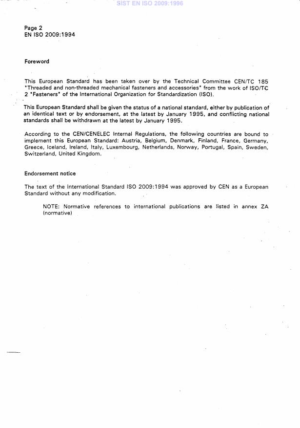 Ta slovenski standard je istoveten z: EN ISO 2009:1994