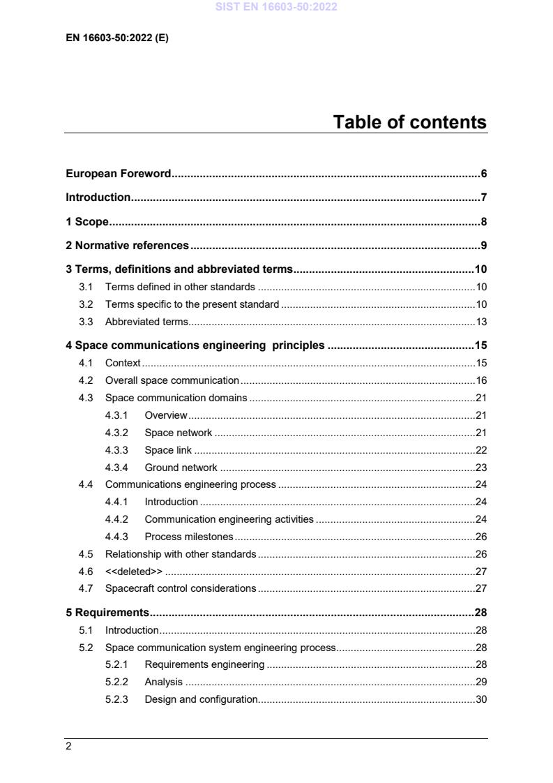 EN 16603-50:2022 is a standard published by the European Committee for Standardization (CEN). Its full title is "Space engineering - Communications". This standard covers: This Standard specifies the requirements for the development of the endtoend data communications system for spacecraft. Specifically, this standard specifies: - The terminology to be used for space communication systems engineering. - The activities to be performed as part of the space communication system engineering process, in accordance with the ECSS-E-ST-10 standard. - Specific requirements on space communication systems in respect of functionality and performance. The communications links covered by this Standard are the spacetoground and spacetospace links used during spacecraft operations, and the communications links to the spacecraft used during the assembly, integration and test, and operational phases. Spacecraft endtoend communication systems comprise components in three distinct domains, namely the ground network, the space link, and the space network. This Standard covers the components of the space link and space network in detail. However, this Standard only covers those aspects of the ground network that are necessary for the provision of the endtoend communication services. NOTE Other aspects of the ground network are covered in ECSS-E ST 70. This Standard may be tailored for the specific characteristics and constraints of a space project in conformance with ECSS-S ST 00.