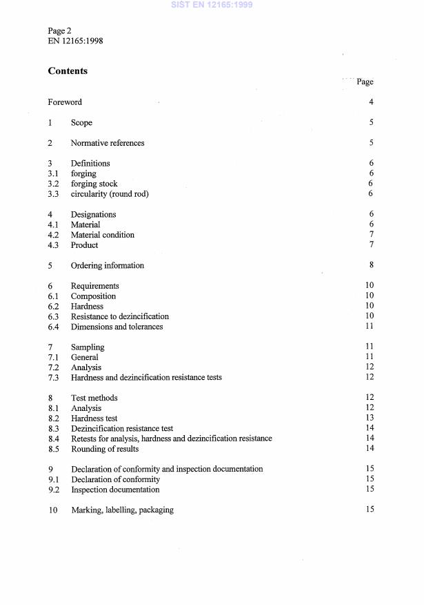 EN 12165:1998 is a standard published by the European Committee for Standardization (CEN). Its full title is "Copper and copper alloys - Wrought and unwrought forging stock". This standard covers: This European Standard specifies the composition, property requirements and dimensional tolerances for copper and copper alloy round rod supplied in straight lengths, specifically intended for forging. This standard is also applicable to regular polygonal rod, hollow rod, rectangular bar and profiles intended for forging. The sampling procedures, the methods of test for verification of conformity to the requirements of this standard, and the delivery conditions are also specified.