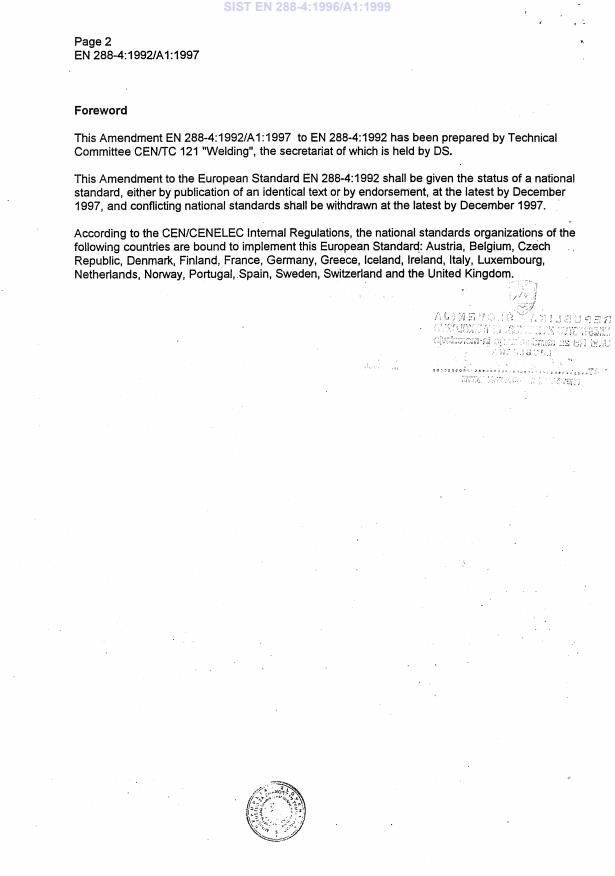 EN 288-4:1992/A1:1997