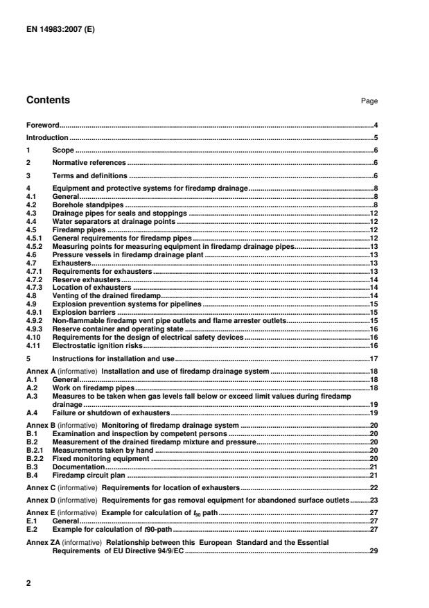 EN 14983:2007 is a standard published by the European Committee for Standardization (CEN). Its full title is "Explosion prevention and protection in underground mines - Equipment and protective systems for firedamp drainage". This standard covers: This standard specifies the requirements for equipment for firedamp drainage. That equipment can consist of ventilators, pressure generators and safety facilities. This standard also specifies requirements for the installation and monitoring of this equipment.