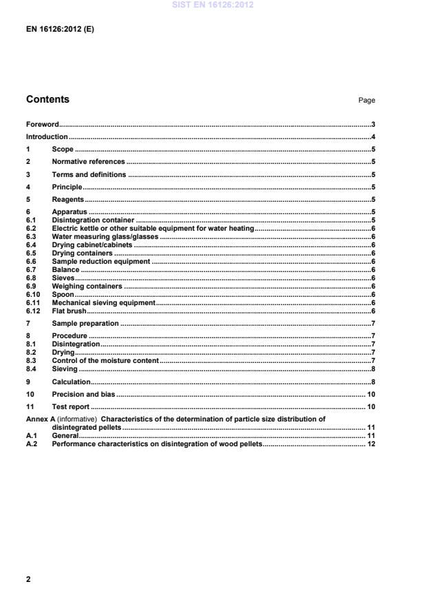 Characteristics of the determination of particle size distribution of disintegrated pellets . 11A.1 General . 11A.2 Performance characteristics on disintegration of wood pellets . 12 SIST EN 16126:2012