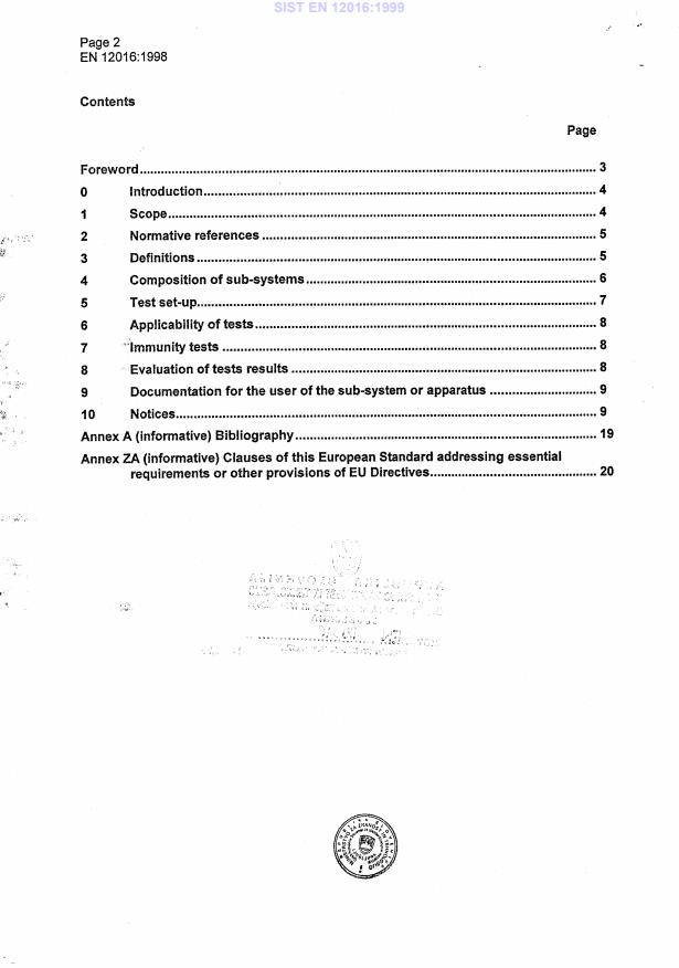 EN 12016:1998 is associated with the following European legislation: EU Directives/Regulations: 2004/108/EC, 2004/108/EU, 89/336/EEC, 92/31/EEC, 95/16/EC, 98/37/EC; Standardization Mandates: M/404, M/BC/CEN/92/3. When a standard is cited in the Official Journal of the European Union, products manufactured in conformity with it benefit from a presumption of conformity with the essential requirements of the corresponding EU directive or regulation.