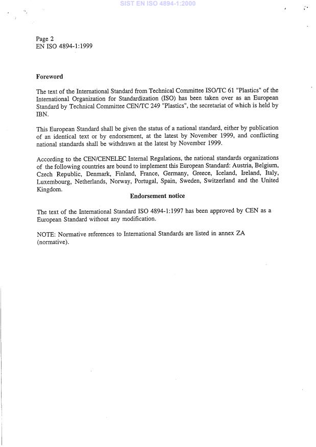 IS0 4894-2:1995, Plastics - Styrene/acryionitrile (SAN) moulding and extrusion materials - Part 2: Preparation of
