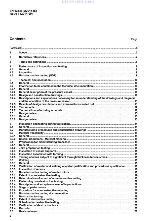 Part 8: Additional requirements for pressure vessels of aluminium and aluminium alloys. CEN/TR 13445-9, Unfired pressure vessels — Part 9: Conformance of EN 13445 series to ISO 16528 Although these Parts may be obtained separately, it should be recognised that the Parts are inter-dependant. As such the manufacture of unfired pressure vessels requires the application of all the relevant Parts in order for the requirements of the Standard to be satisfactorily fulfilled. Corrections to the standard interpretations where several options seem possible are conducted through the Migration Help Desk (MHD). Information related to the Help Desk can be found at http://www.unm.fr (en13445@unm.fr). A form for submitting questions can be downloaded from the link to the MHD website. After subject experts have agreed an answer, the answer will be communicated to the questioner. Corrected pages will be given specific issue number and issued by CEN according to CEN Rules. Interpretation sheets will be posted on the website of the MHD. This document supersedes EN 13445-5:2009. This new edition incorporates the Amendments which have been approved previously by CEN members, and the corrected pages up to Issue 5 without any further technical change. Annex Y provides details of significant technical changes between this European Standard and the previous edition. SIST EN 13445-5:2014