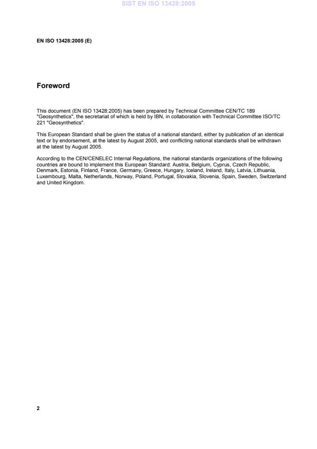 EN ISO 13428:2005 is classified under the following ICS (International Classification for Standards) categories: 59.080.70 - Geotextiles. The ICS classification helps identify the subject area and facilitates finding related standards.