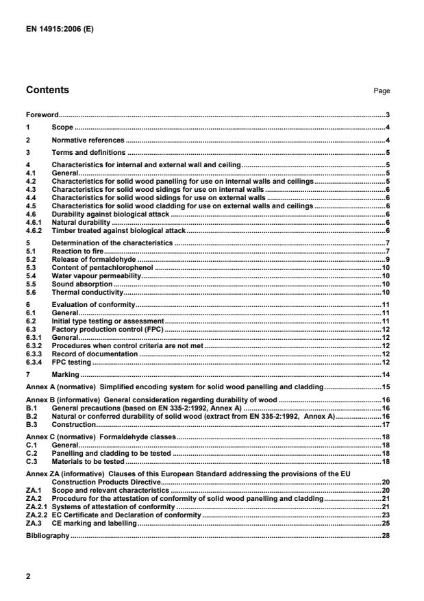 Page Foreword.3 1 Scope.4 2 Normative references.4 3 Terms and definitions.5 4 Characteristics for internal and external wall and ceiling.5 4.1 General.5 4.2 Characteristics for solid wood panelling for use on internal walls and ceilings.5 4.3 Characteristics for solid wood sidings for use on internal walls.6 4.4 Characteristics for solid wood sidings for use on external walls.6 4.5 Characteristics for solid wood cladding for use on external walls and ceilings.6 4.6 Durability against biological attack.6 4.6.1 Natural durability.6 4.6.2 Timber treated against biological attack.6 5 Determination of the characteristics.7 5.1 Reaction to fire.7 5.2 Release of formaldehyde.9 5.3 Content of pentachlorophenol.10 5.4 Water vapour permeability.10 5.5 Sound absorption.10 5.6 Thermal conductivity.10 6 Evaluation of conformity.11 6.1 General.11 6.2 Initial type testing or assessment.11 6.3 Factory production control (FPC).12 6.3.1 General.12 6.3.2 Procedures when control criteria are not met.12 6.3.3 Record of documentation.12 6.3.4 FPC testing.12 7 Marking.14 Annex A (normative)