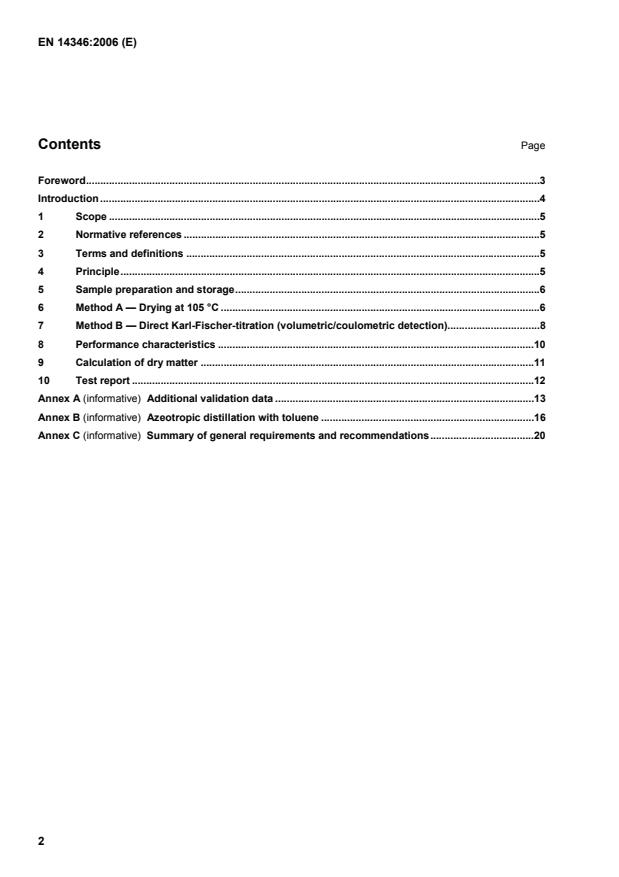 EN 14346:2006 is a standard published by the European Committee for Standardization (CEN). Its full title is "Characterization of waste - Calculation of dry matter by determination of dry residue or water content". This standard covers: This European Standard specifies methods for the calculation of the dry matter of samples for which the results of performed analysis are to be calculated to the dry matter basis. Depending on the nature of the sample, the calculation is based on a determination of the dry residue (Method A) or a determination of the water content (Method B). It applies to samples containing more than 1 % (m/m) of dry residue or more than 1 % (m/m) of water.