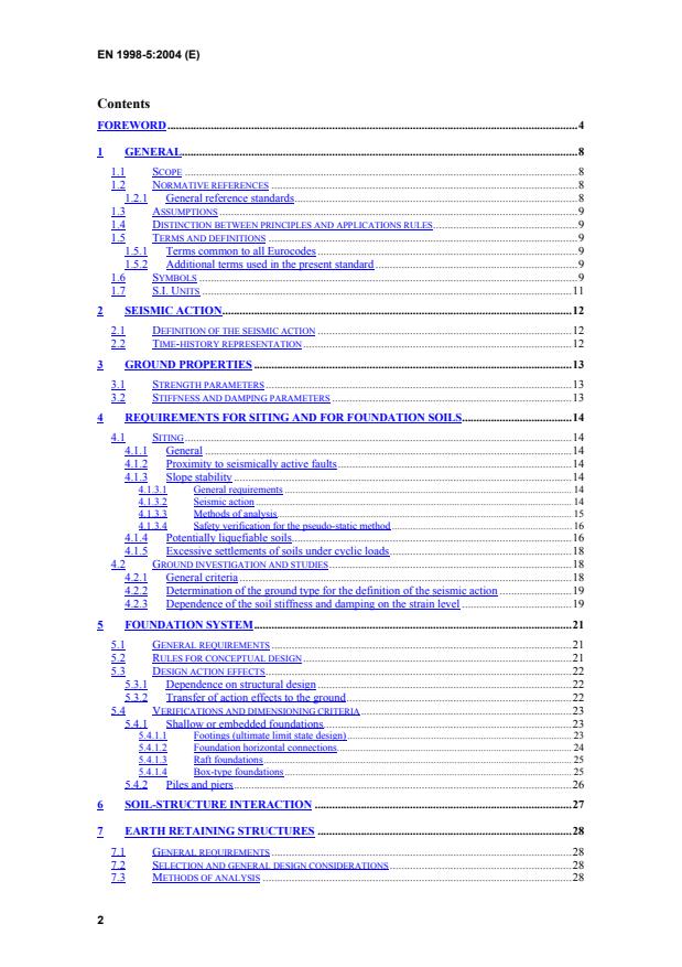 EN 1998-5:2004 is a standard published by the European Committee for Standardization (CEN). Its full title is "Eurocode 8: Design of structures for earthquake resistance Part 5: Foundations, retaining structures and geotechnical aspects". This standard covers: Additional rules for the design of various foundation systems, earth retaining structures and soil-structure interaction under seismic actions in conjunction with the structural design of buildings, bridges, towers, masts, chimneys, silos, tanks and pipelines.