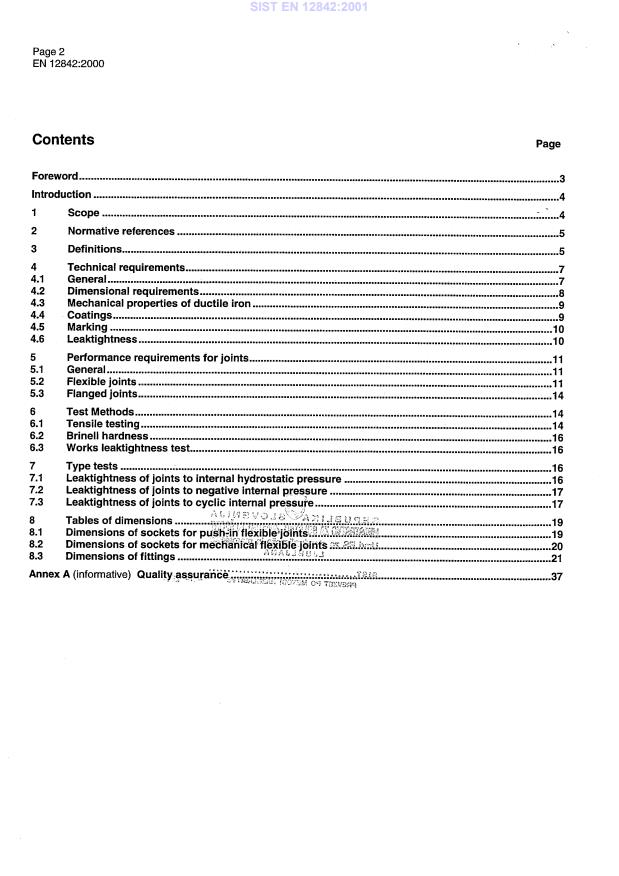 EN 12842:2000 is a standard published by the European Committee for Standardization (CEN). Its full title is "Ductile iron fittings for PVC-U or PE piping systems - Requirements and test methods". This standard covers: This European Standard specifies the requirements and associated test methods applicable to ductile iron fittings and their joints to be used with poly(vinyl chloride) (PVC-U) pipes for polyethylene (PE) pipes, in conformity with prEN 1452-1 to 7 and prEN 12201-1 to 7 respectively, for the construction of pipelines: - to convey water (e.g. potable water); - with or without pressure; - to be installed below or above ground, inside or outside buildings.