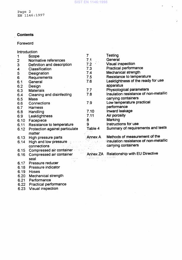2003-01.Slovenski inštitut za standardizacijo. Razmnoževanje celote ali delov tega standarda ni dovoljeno.Atemschutzgeräte für Selbstrettung - Behältergeräte mit Druckluft mit Haube (Druckluftselbstretter mit Haube) - Anforderungen, Prüfung, KennzeichnungAppareils de protection respiratoire pour l'évacuation - Appareils de protection respiratoire isolants autonomes a circuit, a air comprimé avec cagoule (appareils d'évacuation a air comprimé avec cagoule) - Exigences, essais, marquageRespiratory protective devices for self-rescue - Self-contained open-circuit compressed air breathing apparatus incorporating a hood (compressed air escape apparatus with hood) - Requirements, testing, marking13.340.30Varovalne dihalne napraveRespiratory protective devicesICS:Ta slovenski standard je istoveten z:EN 1146:1997SIST EN 1146:1998en01-april-1998SIST EN 1146:1998SLOVENSKI