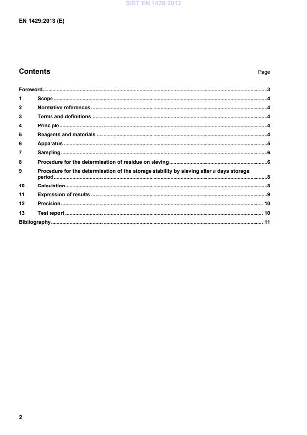 Storage stability is determined as the amount of binder retained on the sieve with a mesh size of 0,500 mm after a defined storage period (n days). 5 Reagents and materials Use only reagents of recognised analytical grade and water conforming to grade 3 of EN ISO 3696. SIST EN 1429:2013