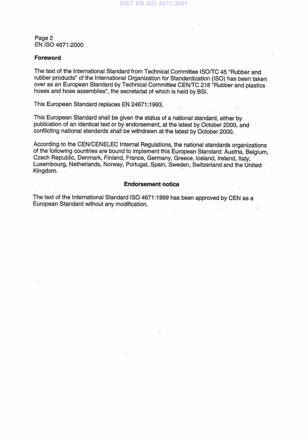 ISO 1999All rights reserved. Unless otherwise specified, no part of this publication may be reproduced or utilized in any form or by any means, electronicor mechanical, including photocopying and microfilm, without permission in writing from the publisher.International Organization for StandardizationCase postale 56 · CH-1211 Genève 20 · SwitzerlandInternetiso@iso.chPrinted in SwitzerlandiiForewordISO (the International Organization for Standardization) is a worldwide federation of national standards bodies (ISOmember bodies). The work of preparing International Standards is normally carried out through ISO technicalcommittees. Each member body interested in a subject for which a technical committee has been established hasthe right to be represented on that committee. International organizations, governmental and non-governmental, inliaison with ISO, also take part in the work. ISO collaborates closely with the International ElectrotechnicalCommission (IEC) on all matters of electrotechnical standardization.Draft International Standards adopted by the technical committees are circulated to the member bodies for voting.Publication as an International Standard requires approval by at least 75 % of the member bodies casting a vote.International Standard ISO 4671 was prepared by Technical Committee ISO/TC 45, Rubber and rubber products,Subcommittee SC 1, Hoses (rubber and plastics).This second edition cancels and replaces the first edition (ISO 4671:1984), which has been technically revised.SIST EN ISO 4671:2001