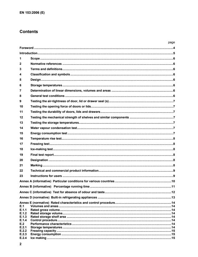 EN 153:2006 is a standard published by the European Committee for Standardization (CEN). Its full title is "Methods of measuring the energy consumption of electric mains operated household refrigerators, frozen food storage cabinets, food freezers and their combinations, together with associated characteristics". This standard covers: This European Standard specifies the methods for measuring the energy consumption of electric mains operated household refrigerating appliances, together with associated characteristics. This European Standard is not concerned with safety.
