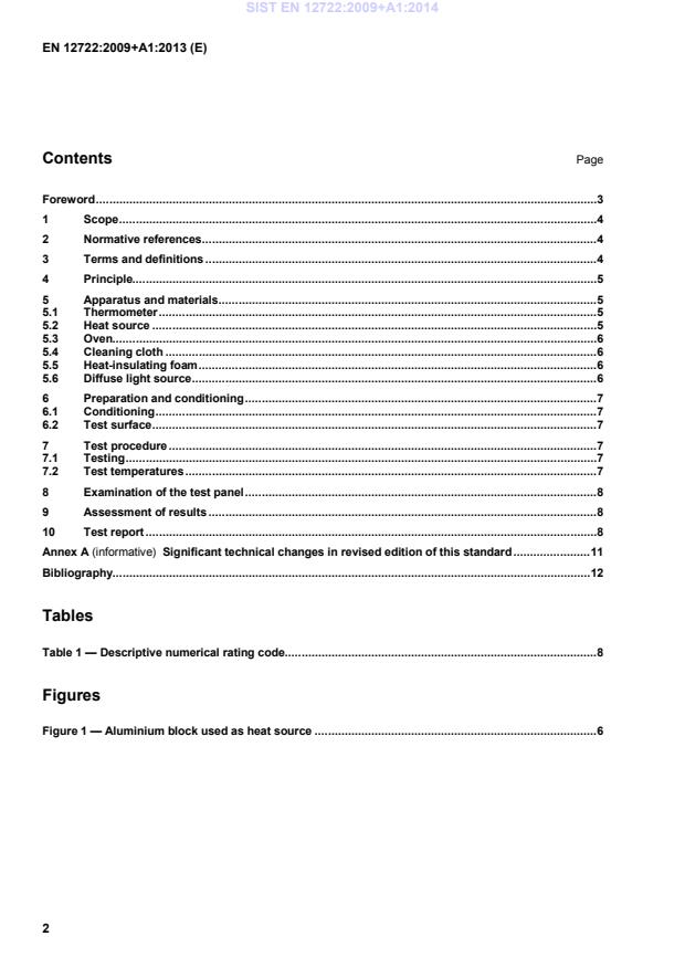 1 Scope This European Standard specifies a method for the assessment of the resistance to dry heat of all rigid furniture surfaces regardless of materials. It does not apply to leather and textile surfaces. The test is intended to be carried out on a part of the finished furniture, but can be carried out on test panels of the same material, finished in an identical manner to the finished product, and of a size sufficient to meet the requirements of the test. The test should be carried out on unused surfaces. !deleted text" 2 Normative references !The following documents, in whole or in part, are normatively referenced in this document and are indispensable for its application. For dated references, only the edition cited applies. For undated references, the latest edition of the referenced document (including any amendments) applies." EN ISO 4287:1998, Geometrical Product Specifications (GPS) – Surface texture: Profile method – Terms, definitions and surface texture parameters (ISO 4287:1997) EN ISO 4288:1997, G
