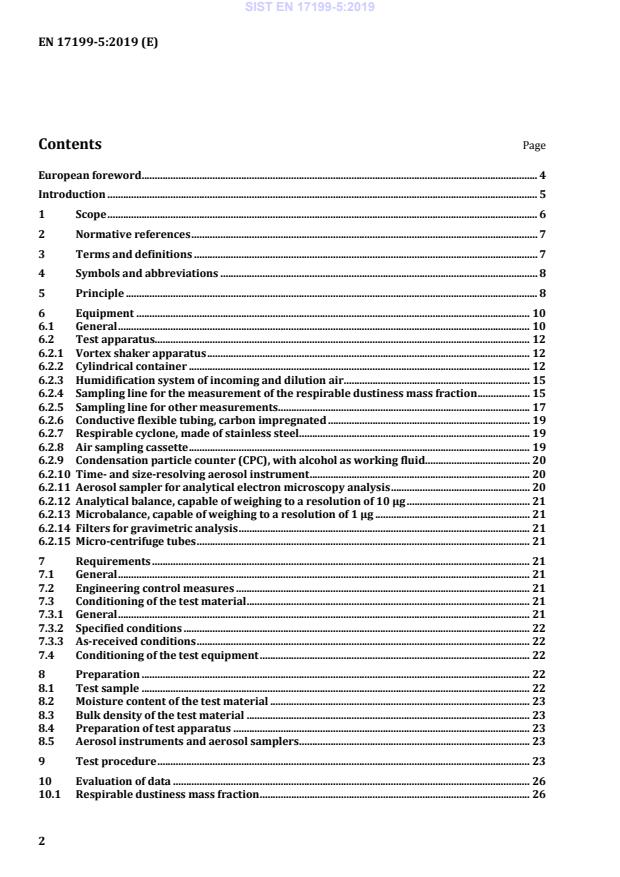 Ta evropski standard določa metodologijo za merjenje in opredelitev prašnosti razsutih materialov, ki vsebujejo ali sproščajo nanopredmete ali submikrometrske delce v standardnih in ponovljivih pogojih, ter za ta namen določa metodo s krožnim mešalnikom.