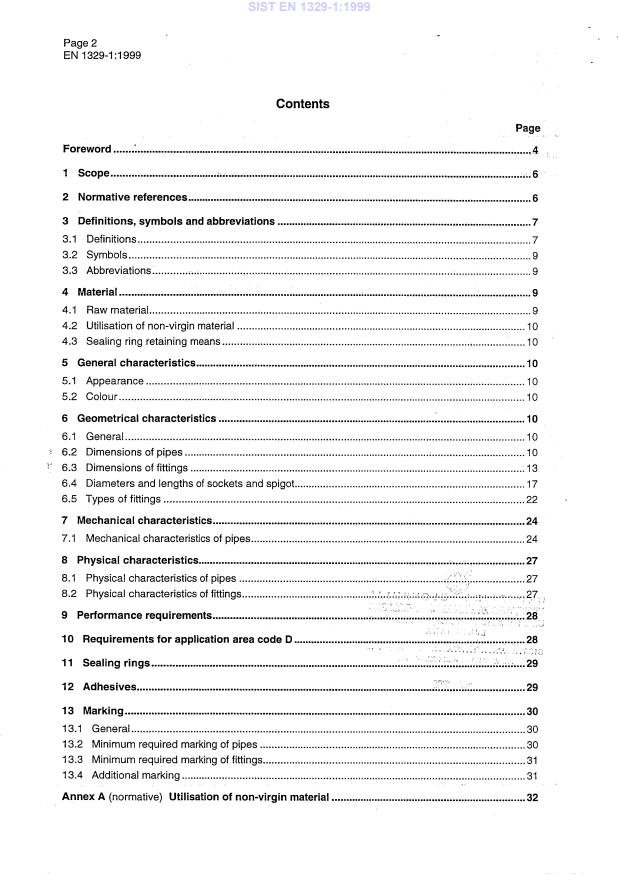 This standard specifies the requirements for pipes, fittings and the system of unplasticized poly(vinyl chloride) (PVC-U) piping systems in the field of soil and waste discharge (low and high temperature) inside buildings (marked with "B") and for soil and waste discharge systems for both inside buildings and buried in ground within the building structure (marked with "BD").