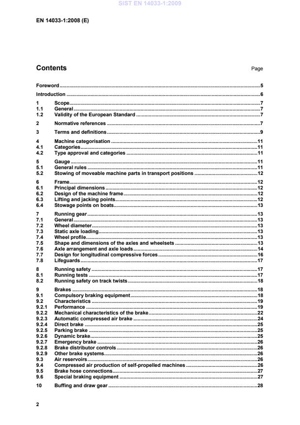 4.2 Type approval and categories In order to use this European Standard, it is necessary to establish in which category the machine belongs. The corresponding requirements for the categories are defined in Annex A. Machines meeting the requirements for their category, receive running approval for this category only. 5 Gauge 5.1 General rules Machines shall meet the dimensional requirements of prEN 15273-2 in all respects. The critical points near the limits of the permissible kinematic gauge shall be represented in the documentation according to Annex C. Machines intended to run on infrastructures with more restrictive gauges shall conform to the specific rules of those infrastructures and the corresponding restrictions shall be indicated on their access permit. SIST EN 14033-1:2009