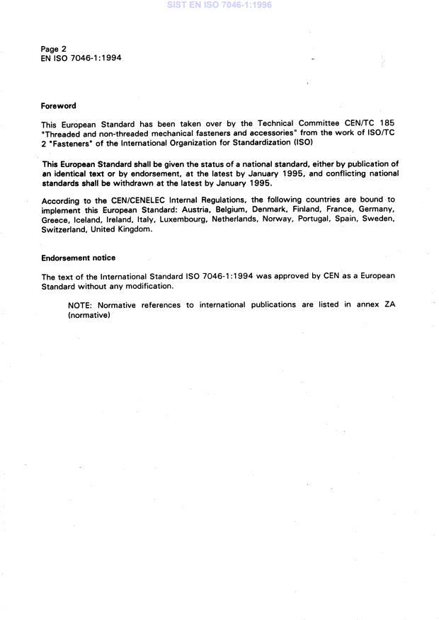 EN ISO 7046-1:1994 is a standard published by the European Committee for Standardization (CEN). Its full title is "Countersunk flat head screws (common head style with type H or type Z cross recess) - Product grade A - Part 1: Steel of property class 4.8 (ISO 7046-1:1994)". This standard covers: Specifies the characteristics of countersunk flat head screws of product grade A and property class 4.8, with threads from M1,6 to M10 inclusive and with type H or type Z cross recess. If, in special cases, specifications other than those listed here are required, they should be selected from existing International Standards, e.g. ISO 261, ISO 888, ISO 898-1 and ISO 965-2.