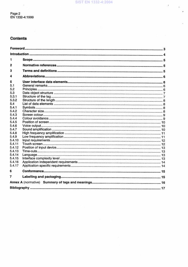 EN 1332-4:1999 is a standard published by the European Committee for Standardization (CEN). Its full title is "Identification card systems - Man-machine interface - Part 4: Coding of user requirements for people with special needs". This standard covers: This European Standard defines the data elements to be stored within an integrated circuit(s) card and exchanged in order to enable integrated circuit(s) card accepting terminals to identify specific user interface preferences. The preference information may be used by terminals to configure appropriate methods of communicating with the user during a transaction process.