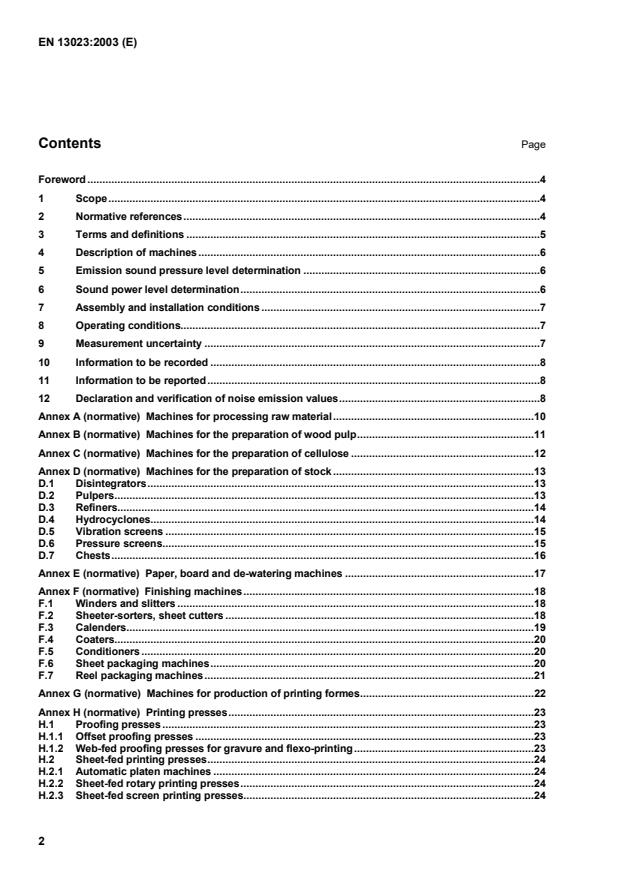 EN 13023:2003 is a standard published by the European Committee for Standardization (CEN). Its full title is "Noise measurement methods for printing, paper converting, paper making machines and auxiliary equipment - Accuracy grades 2 and 3". This standard covers: This noise test code specifies all the information necessary to carry out efficiently and under standardized conditions the determination, declaration and verification of the airborne noise emission of printing and paper converting machines covered by EN 1010 and of paper making and paper finishing machines covered by EN 1034. It specifies noise measurement methods that are allowed and installation and operating conditions that shall be used for the test.
