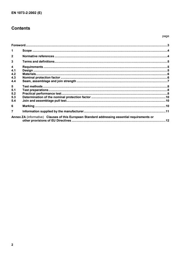 EN 1073-2:2002 is a standard published by the European Committee for Standardization (CEN). Its full title is "Protective clothing against radioactive contamination - Part 2: Requirements and test methods for non-ventilated protective clothing against particulate radioactive contamination". This standard covers: This European Standard specifies the requirements and test methods for non-ventilated protective clothing protecting the wearer against particulate radioactive contamination. Such clothing is intended to protect only the body, arms and legs of the wearer, but it may be used with accessories which provide protection to additional areas of the wearer (e.g. boots, gloves, RPE). Protection to these other areas is specified in other European Standards. This European Standard does not apply for the protection against ionizing radiation and the protection of patients against contamination with radioactive substances by diagnostic and/or therapeutic measures.