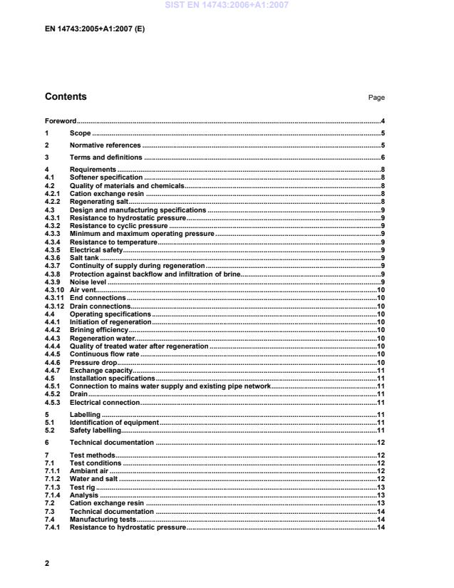 This European Standard specifies requirements relating to the construction and mode of operation and relevant methods of testing of automatic, salt-regenerated, cation exchange softeners for drinking water installations inside buildings which are permanently connected to the mains supply.