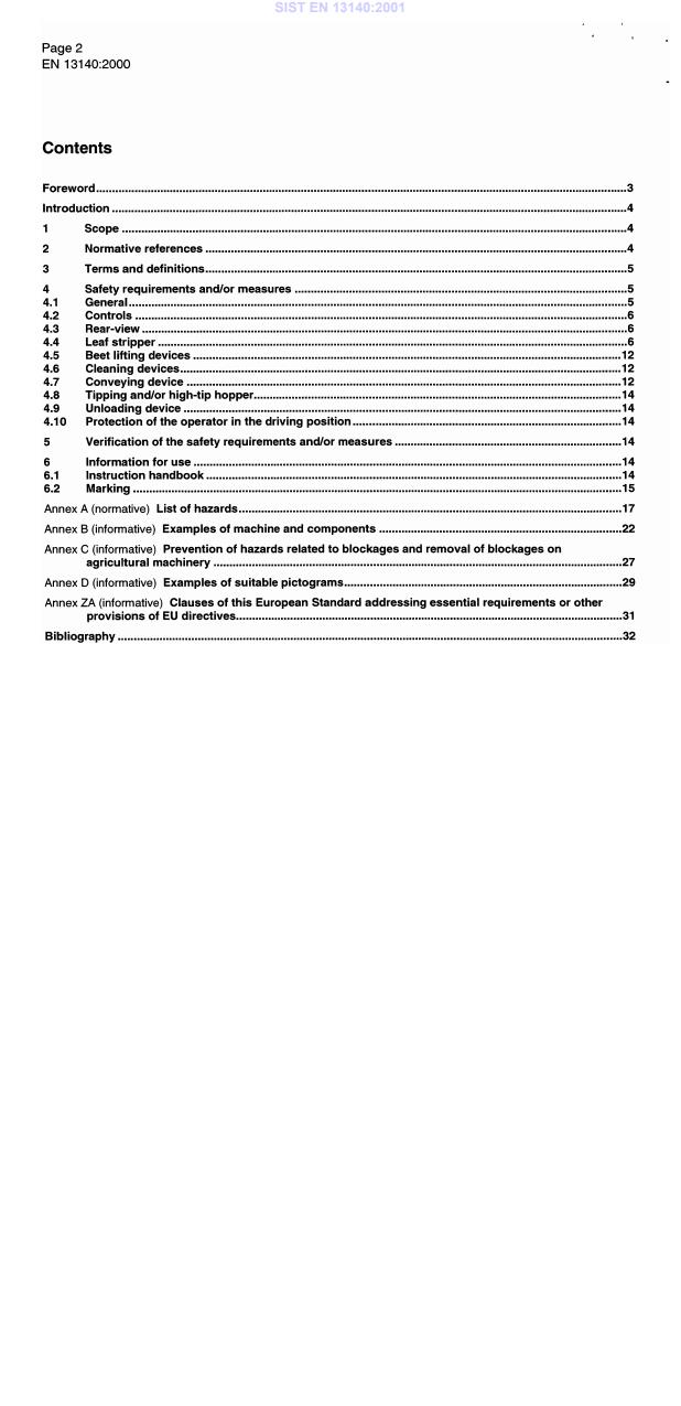 EN 13140:2000 is a standard published by the European Committee for Standardization (CEN). Its full title is "Agricultural machinery - Sugar beet and fodder beet harvesting equipment - Safety". This standard covers: This standard specifies specific safety requirements and their verification for the design and construction of all sugar beet and fodder beet harvesting machines trailed, mounted or self-propelled which carry out one or more of the following operations : leaf stripping, topping, lifting, picking-up, cleaning, conveying and unloading of beet. This standard is not applicable to cleaner-loaders which operate from a heap of beet. In addition, it specifies the type of information on safe working practices to be provided by the manufacturer.