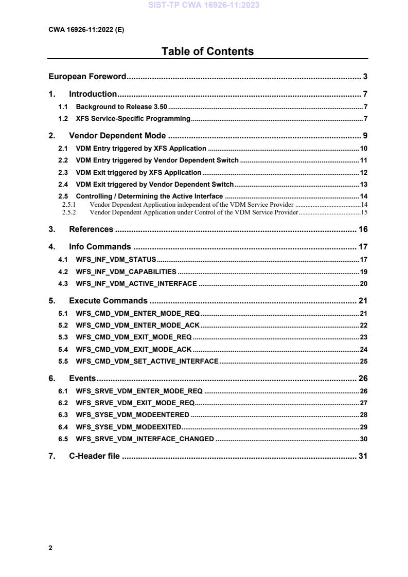 CWA 16926-11:2022 - "Extensions for Financial Services (XFS) interface specification Release 3.50 - Part 11: Vendor Dependent Mode Device Class Interface - Programmer's Reference" is a CEN Workshop Agreement (CWA) that documents the Vendor Dependent Mode (VDM) programming model for XFS Release 3.50. Targeted at developers of financial peripheral device drivers and integrators, this programmer’s reference covers the API/SPI behaviours, commands, events and information queries associated with entering, controlling and exiting vendor-dependent modes. The scope includes handling Exception XML and integrates Release 3.50 features such as E2E security and PIN Password Entry enhancements.