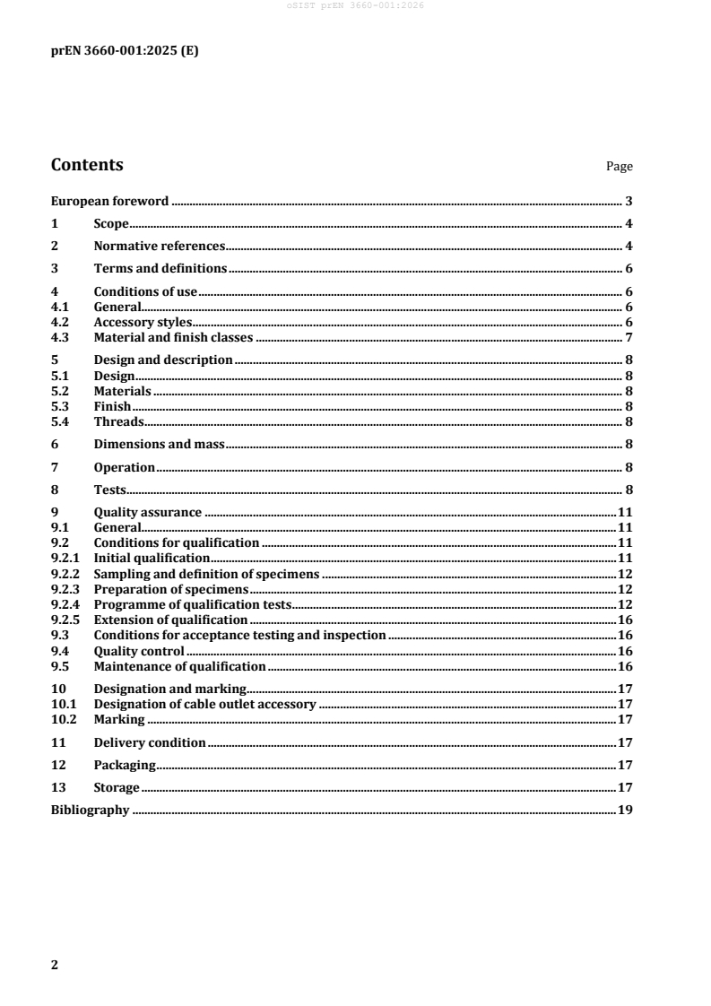 - EN 3660-002 – Index of product standards for cable outlet accessories