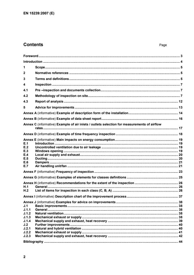 The possibility to introduce classes is given in this standard in order to leave Member States freedom to choose between different objectives and extent of inspection, within a harmonised framework. All inspection activities undertaken should be subject to compliance with all health and safety requirements for the persons involved. This standard also complements EN 15240 concerning the inspection of air conditioning systems for the inspection of the ventilation part that is to be performed in relation to 4.2 dealing with mechanical exhaust and/or supply ventilation systems.