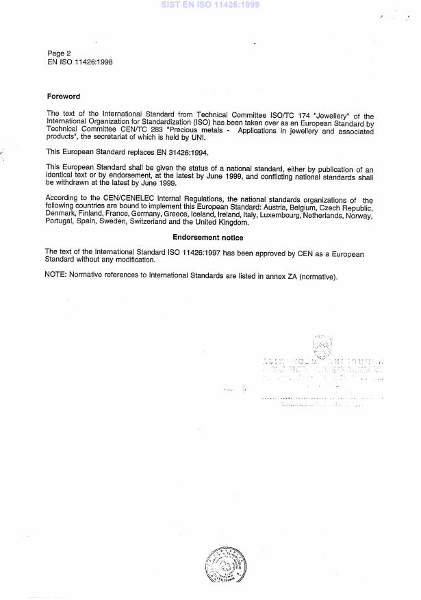 EN ISO 11426:1998 is classified under the following ICS (International Classification for Standards) categories: 39.060 - Jewellery. The ICS classification helps identify the subject area and facilitates finding related standards.